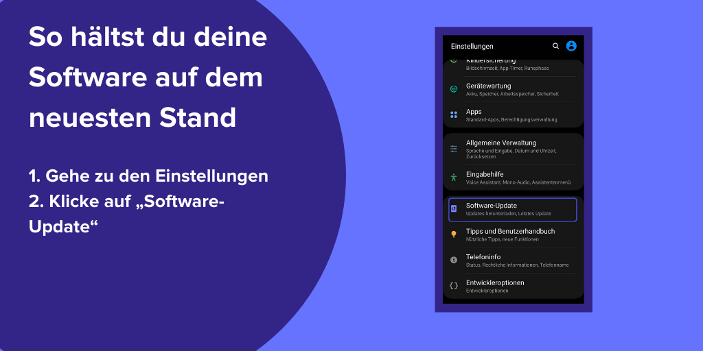 Wenn es um Sicherheit geht, ist es wichtig, die Software deiner Geräte immer auf dem neuesten Stand zu halten. Wenn du eine Benachrichtigung zu einem System-Update erhältst, aktualisiere sie so schnell wie möglich, da diese oft Sicherheitsupdates enthalten.