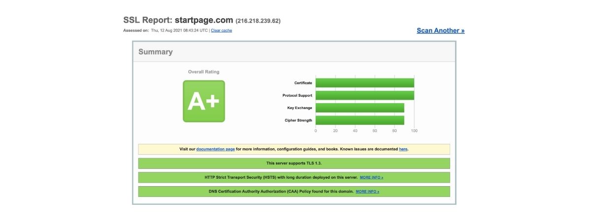 Startpage has an A+ on SSL Labs, and for those concerned about the privacy and security of their searches, as you should be, this is a big deal.